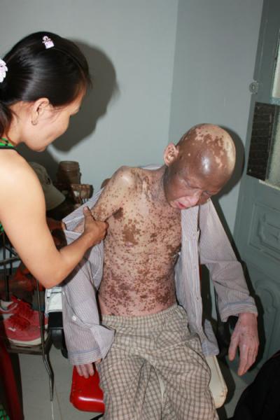 Cả thân hình anh Điền loang lổ, da lột như rắn