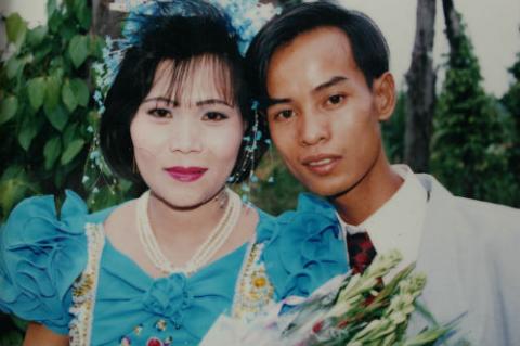 Anh Điền và vợ trong ngày cưới. Theo lời chị Hạnh, từ trước tới giờ chồng không bao giờ bị bệnh và có dấu hiệu kiệt quệ như lúc này