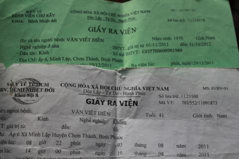 Giấy khám bệnh của anh Điền