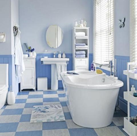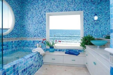 Bạn cũng nên treo một tấm gương để phản chiếu ánh sáng từ cửa sổ vào và lựa chọn gam màu xanh da trời, xanh nhạt, xanh lá cây cho đồ nội thất, phụ kiện phòng tắm. Nếu bạn cảm thấy phòng tắm có nhiều màu xanh gây cảm giác quá lạnh hoặc nhàm chán, bạn có thể bổ sung thêm những hình ảnh của những chú cá đầy màu sắc, một bãi biển đầy nắng, bầu trời, cây cỏ hoặc những ngọn sóng lên bức tường. Điều này sẽ giúp phòng tắm trông tươi sáng, thú vị và dễ chịu hơn.