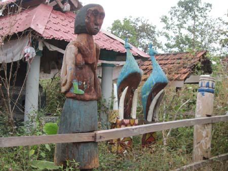 Một trong những khu mộ hiếm hoi còn tượng nhà mồ theo truyền thống ở buôn Y Lành (xã Krôngna, huyện Buôn Đôn)