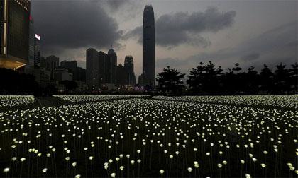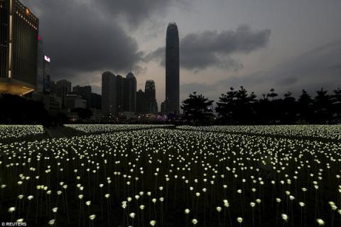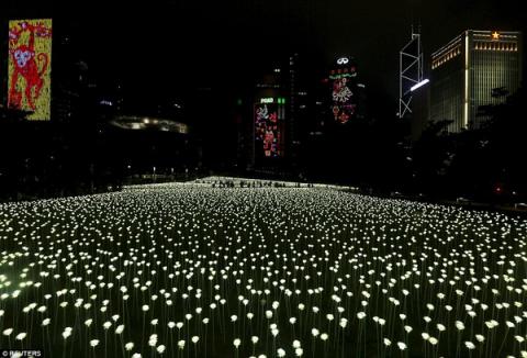 Hồng Kông những ngày này trở nên vô cùng rực rỡ với màn thắp sáng của 25.000 bông hoa hồng trắng được làm bằng đến LED tại khu vực Central Promenade.