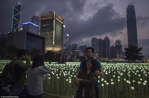 Mùa Valentine năm nay, Hồng Kông trở thành địa điểm lý tưởng cho các cặp đôi với màn thắp sáng của 25.000 bông hoa hồng trắng làm từ đèn LED vô cùng rực rỡ.