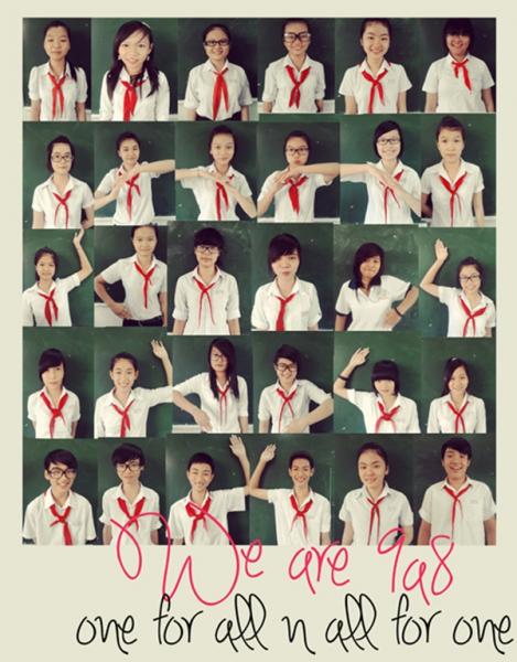 Với xu hướng này, lớp bạn phải chụp rất nhiều ảnh để tạo thành một bức ảnh có nội dung hẳn hoi. Kiểu ghép ảnh này tương tự như trò chơi xếp hình. Điều đặc biệt là slogan của lớp sẽ được chính các bạn tạo thành từ những tấm ảnh bé xinh.