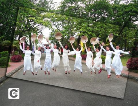 Nghĩa là bạn sẽ phải chụp ít nhất là 2 tấm ảnh rồi ghép chúng với nhau sao cho thật khớp với phông nền. Cũng có thể ghép thật nhiều ảnh kỷ niệm vào một khung hình như cuốn nhật ký lớp vậy. Trào lưu này khiến nhiều lớp chọn lắm nhé!
