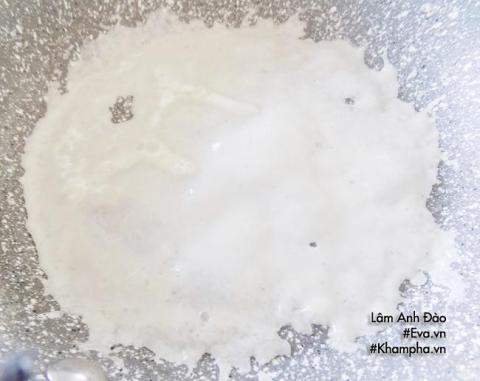 - Chảo hơi nóng thì bạn múc ít bột đổ vào tráng mỏng.