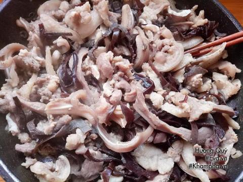 Bước 1: Tai, lưỡi lợn, má lợn đem rửa thật sạch với muối, cạo hết lông. Sau đó đun một nồi nước sôi chần qua làm sạch lần nữa và khử mùi hôi, rửa lại lần nữa bằng nước lọc rồi để ráo. Thái mỏng từng miếng. Mộc nhĩ ngâm nước ấm khoảng 5-10 phút cho nở sau đó rửa sạch, cắt bỏ chân và thái mỏng.