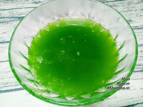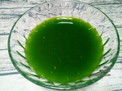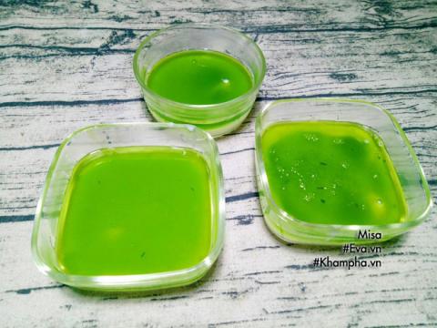 Pha nước cốt lá dứa với 1 phần nước thạch, ta sẽ có nước thạch màu xanh trong.