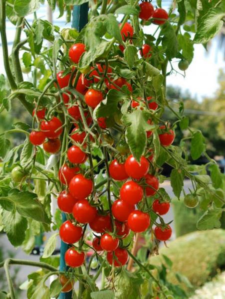 Cà chua: Đây là loại cây phổ biến và phù hợp nhất cho mọi khu vườn. Bạn có thể trồng cà chua (cà chua bi, cà chua chocolate, cà chua vàng, cà chua múi,...) trong giỏ treo, trong chậu, trong thùng xốp hay bất cứ đâu có đủ ánh nắng mặt trời và các điều kiện chống đỡ cho thân cây.