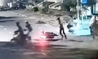 Ngay lúc này, hai đối tượng đi xe máy giật túi xách vòng ngược trở lại cùng với các đối tượng khác đi xe máy từ phía sau đi tới tấn công đôi nam nữ rồi cướp xe máy tẩu thoát khỏi hiện trường.