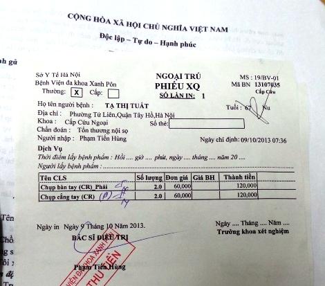 Bà Tạ Thị Tuất đang điều trị tại BV Xanh Pôn |