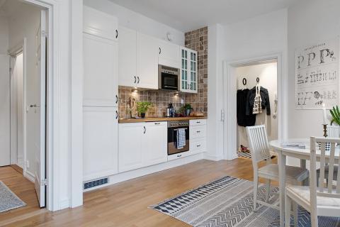 Căn hộ hai phòng ngủ với phòng khách, nhà bếp, phòng ngủ, phòng tắm và phòng thay đồ, tất cả đều được gói gọn trên diện tích 42m² vàmang đậm phong cách Scandinavia điển hình. Vậy nên, bạn sẽ thấy được tất cả những đặc trưng điển hình của phong cách Bắc Âu trong ngôi nhà này. Các bức tường được sơn sáng màu, sàn nhà gỗ tự nhiên tươi sáng, cắt giảm đi những bức tường ngăn cách thay bằng không gian mở rộng rãi.