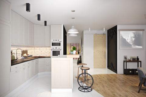 Không gian nhà bếp khéo pha trộn với phòng khách nhưng lại mang đến một thế giới khác. Cả không gian gần như được phủ kín bởi sắc trắng từ đá lát, tủ bếp và đèn chiếu sáng. Cảm giác an tĩnh, thanh lịch là điều khu vực này mang đến cho cảm nhận của bạn.