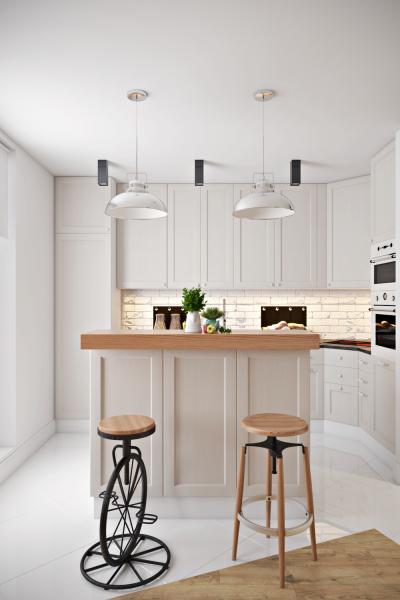 Không gian thanh lịch, yên bình với sắc trắng toàn bộ của khu vực nhà bếp.