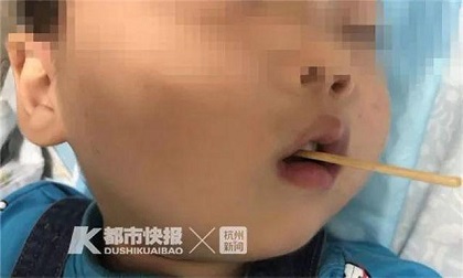 Vào lúc 6 giờ ngày 1/5, Khoa phẫu thuật thần kinh của Bệnh viện Nhi thuộc Đại học y khoa Chiết Giang đã tiếp nhận một trường hợp khẩn cấp, cậu bé Tiểu Quân 3 tuổi bị que xiên xúc xích đâm thằng vào cổ họng, ảnh hưởng đến thân não, gây nguy hiểm đến tính mạng.