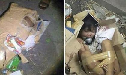 Những bức ảnh ghi lại cảnh tượng 1 bé gái bị trói chặt chân tay bằng băng dính rồi nhét vào thùng các-tông được chia sẻ rộng rãi trên facebook khiến nhiều người sợ hãi. Người chia sẻ hình ảnh cho biết đây là nạn nhân của nạn buôn trẻ em nhưng câu chuyện thực tế còn đáng sợ hơn nhiều.
