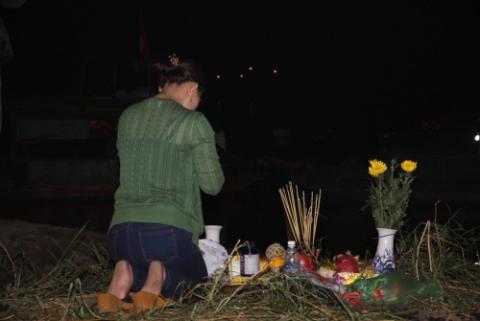20h50, những chiếc thuyền nhỏ lại chở người nhà chị H. ra sông làm lễ với hy vọng sẽ tìm được thi thể của chị.