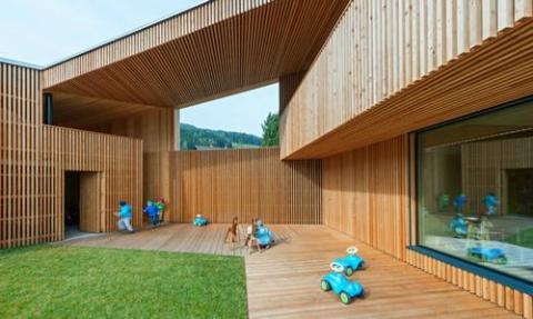 Hãng kiến trúc Áo Feld72 công bố thiết kế cho trường mẫu giáo được bao bọc hoàn toàn bởi vật liệu gỗ nằm trong ngôi làng nhỏ của Valdaora di Sotto tại South Tyrol, Ý.