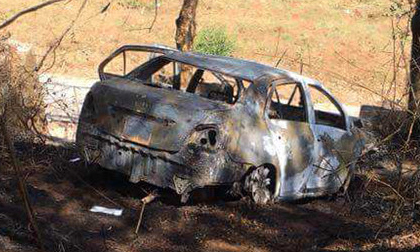 Khi cơ quan chức năng kiểm tra hiện trường, thi thể của 2 nạn nhân trong ôtô bị thiêu cháy biến dạng. Ôtô bị thiêu rụi hoàn toàn.