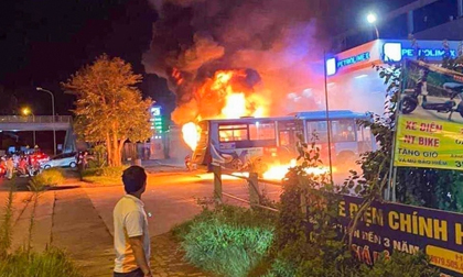 Tối 5-7, Công an huyện Đông Anh (Hà Nội) báo cáo ban đầu về về sự cố cháy xe buýt ngay gần một trạm bơm xăng lớn trên địa bàn.