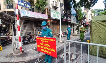 Còn ngày 13/8, UBND phường Đội Cấn (quận Ba Đình) cũng đã tiến hành phong tỏa từ số nhà 1 đến số nhà 129 phố Đội Cấn và chốt cứng một số ngõ do liên quan đến nhiều ca nhiễm virus SARS-CoV-2.