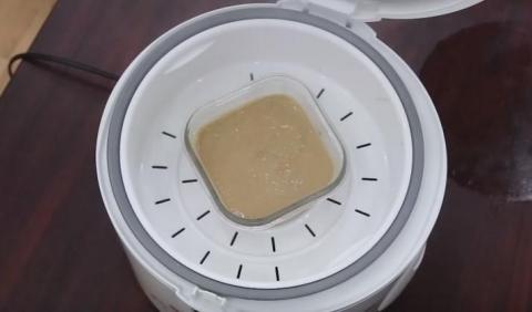Cho ruột bánh mì đã ngâm mềm với sữa vào đảo đều. Khi gan và thịt chín bạn nêm nếm thêm bột gia vị cho vừa miệng. Cho hỗn hợp trên vào nồi cơm điện bật nút nấu bình thường. Khi nồi cơm điện nhảy nút bạn để như vậy thêm 5 phút và lấy ra xay nhuyễn là được.