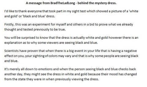 "Một tin nhắn từ BradTheLadLong - đằng sau chiếc váy bí ẩn.