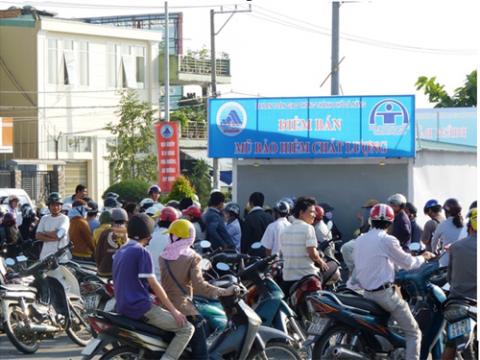 Tuy nhiên, họ chờ mãi vẫn không thấy cơ quan chức năng làm việc, địa điểm đổi mũ bảo hiểm thì đóng cửa.