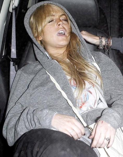 Linsay Lohan gáy khò khò trên xe sau một tuần làm việc vất vả. Hình ảnh của cô nhanh chóng bị các tay máy chộp lại.