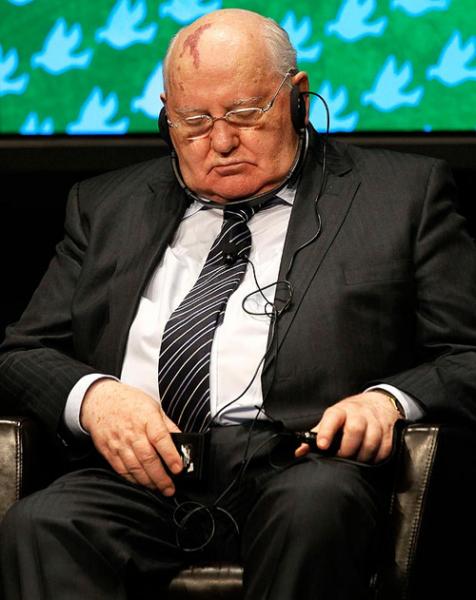 Cựu lãnh đạo Xô Viết Mikhail Gorbachev ngủ ngon lành giữa lễ trao giải Nobel Hòa bình tổ chức tại Chicago hồi năm ngoái.
