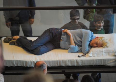 Tilda Swinton là người nổi tiếng duy nhất đã tình nguyện ngủ ở nơi công cộng. Cô tình nguyện ngủ 7 tiếng đồng hồ trong một hộp kính tại triển lãm nghệ thuật.