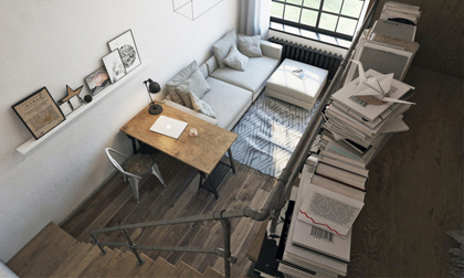 Thông thường những căn hộ nhỏ nếu dùng tông màu trắng, thường sẽ có thêm những khoảng tường màu sắc làm điểm nhấn. Nhưng căn hộ này lại khác, khoảng tường điểm nhấn ở đây lại là bức tường nguyên màu xi măng hay bức tường mộc sơn trắng. Sự kết hợp khéo léo của các tông lạnh cùng những khung cửa sổ rộng và sàn gỗ sáng màu khiến không chung vẫn đảm bảo được sự ấm cúng, dễ chịu.