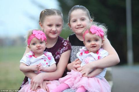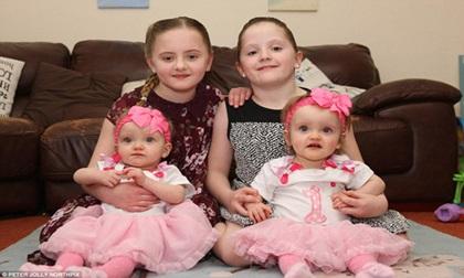 2 cặp song sinh chào đời cùng ngày nhưng cách nhau 8 năm.