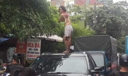 Cô gái thậm chí cởi cả áo ra và chỉ mặc chiếc quần cộc hoa đứng trên nóc xe để múa và hò hét. Chiếc ô tô cũng vì thế đỗ giữa đường không di chuyển.
