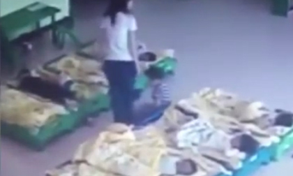 Clip ghi lại hình ảnh trong giờ ngủ trưa, hai giáo viên mầm non liên tục có những hành vi bạo hành các em trong chính lớp học của mình.