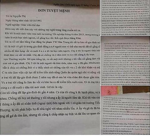 Theo nội dung bức thư tuyệt mệnh, chị T. là con gái út trong gia đình có 4 anh chị em. Dù hoàn cảnh có khó khăn nhưng bố mẹ chị vẫn cố gắng nuôi 4 người con ăn học nên người. Sau khi tốt nghiệp trường sư phạm, chị T. cũng có công việc ổn định và lấy chồng sinh con. Tuy nhiên, cuộc sống vợ chồng chị không hạnh phúc.