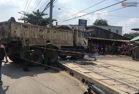 Con gái gào khóc gọi tên mẹ bị xe ben cán tử vong.