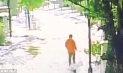 Hình ảnh từ camera cho thấy cậu bé Ming Ming cầm điện thoại ra khỏi nhà.