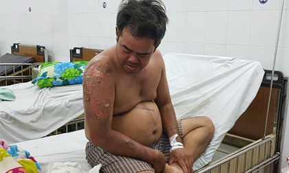 Cùng nằm chung phòng với em trai, anh Huỳnh Phước Thiện (41 tuổi) bị thương nặng hơn. Những vết bỏng trên cơ thể lở loét, các đầu ngón chân bị rộp đau đớn đã được bác sĩ băng bó.