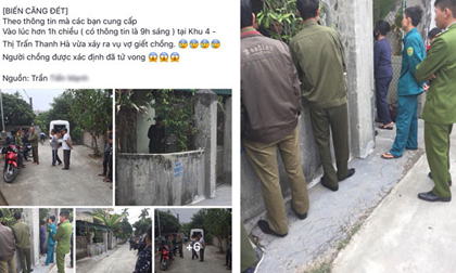 Trước đó, trên mạng xã hội Facebook chia sẻ thông tin tại khu dân cư số 4, thị trấn Thanh Hà xảy ra vụ việc án mạng vợ giết chồng kèm theo nhiều hình ảnh cảnh sát kiểm tra hiện trường.
