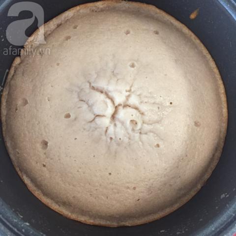 Khi nồi cơm nhảy nút chuyển sang chế độ Warm thì đợi thêm 10 phút nữa, lấy bánh ra lật úp mặt bánh xuống để đảm bảo bánh đều được chín vàng.