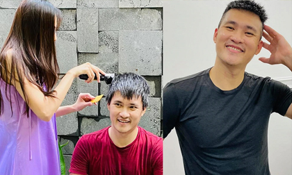 Cụ thể, Công Vinh vui vẻ đăng tải loạt ảnh anh được đích thân bà xã cắt tóc cho. Theo chia sẻ của Công Vinh, Thủy Tiên đã dùng chiếc kéo cắt đồ ăn trong bếp để cắt tóc cho ông xã. Cô sử dụng khá thành thạo tông đơ, kéo và lược, không thua kém thợ làm tóc.