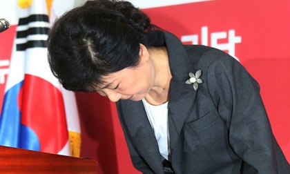 | Bà Park cúi đầu xin lỗi về những sai lầm của cha mình, nhà lãnh đạo độc tài Park Chung Hee. |