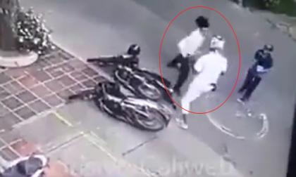Thanh niên đi xe máy cướp điện thoại từ tay một người đàn ông. Tên cướp muốn bỏ chạy nhưng chiếc xe không nổ máy.
