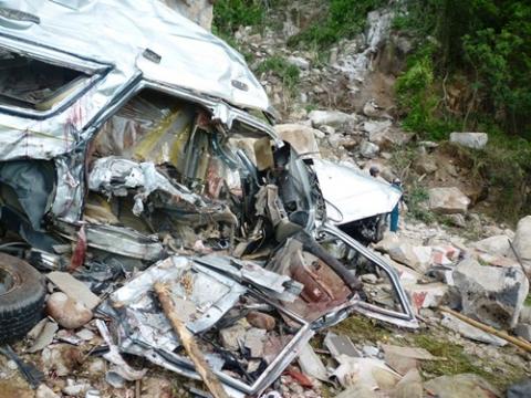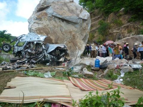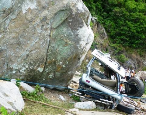 Những người dân chứng kiến vụ lở đá cho biết trên xe có 7 người và chết tại chỗ 5 người. Một trong hai người được đưa cấp cứu tại bệnh viện huyện đã chết.