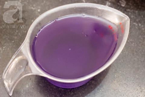 Bạn cho tiếp nước ngâm bắp cải tím vào khuấy đều để bột tan hết.