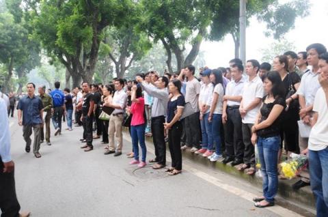 Buổi diễn tập đã thu hút sự chú ý của hàng chục nghìn người đang đứng xếp hàng để chờ thắp hương Đại tướng.