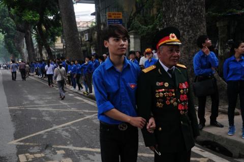 Lực lượng tình nguyện viên hỗ trợ những người vào viếng Đại tướng Võ Nguyên Giáp.