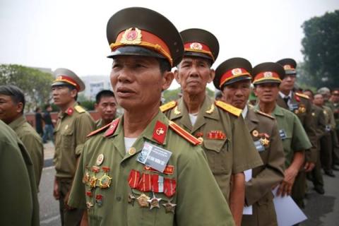Các quân nhân xếp hàng oai nghiêm chờ viếng Đại tướng.