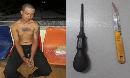 Hung thủ Sang và hung khí sát hại em. Ảnh: CAĐN.